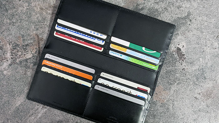 一般的な札入れよりコンパクトなサイズ感ながら6 枚のカードが収納できます。